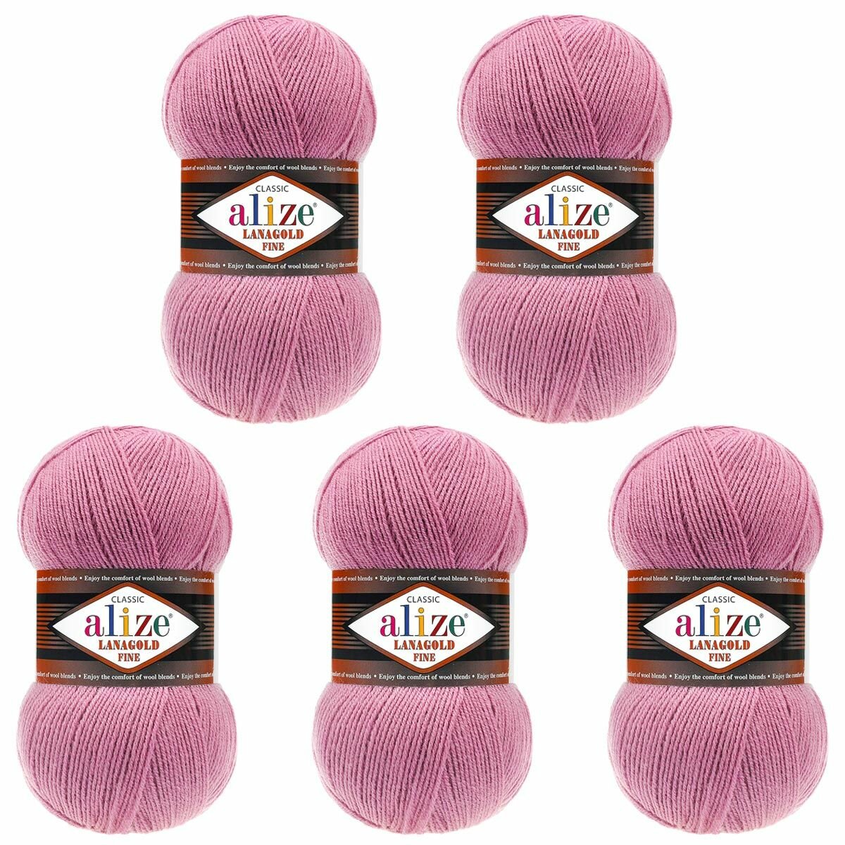 Пряжа Ланаголд Файн Alize (Lanagold Fine) упаковка 5 мотков 100 г 390 м. 49% шерсть 51% акрил цвет 440 темная сухая роза