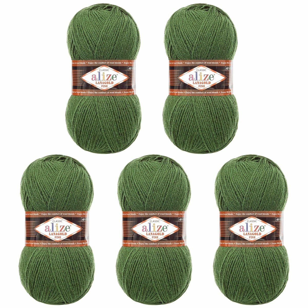 Пряжа для вязания ALIZE LANAGOLD FINE: 29 (хаки), 5 шт 390 м 100 г, 49% шерсть 51% акрил