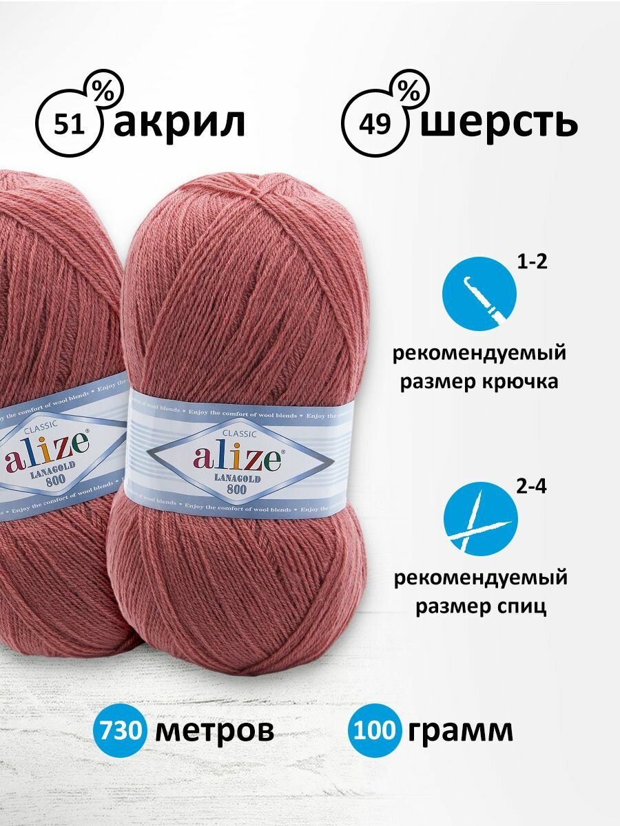 Пряжа Lanagold 800 Alize (166), 100г, 800м, 49% шерсть, 51% акрил (2 шт.)