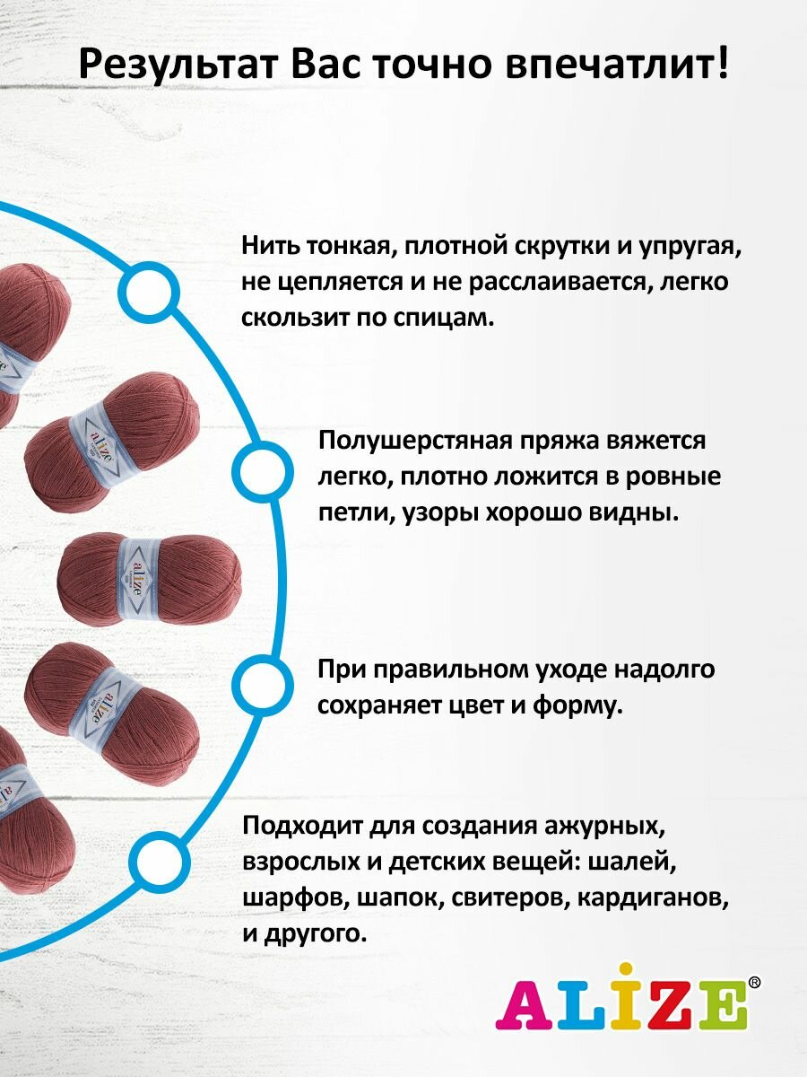 СохранитьПряжа Alize Lanagold 800 увядшая роза (173), 51%акрил/49%шерсть, 800м, 100г, 5шт интересное: