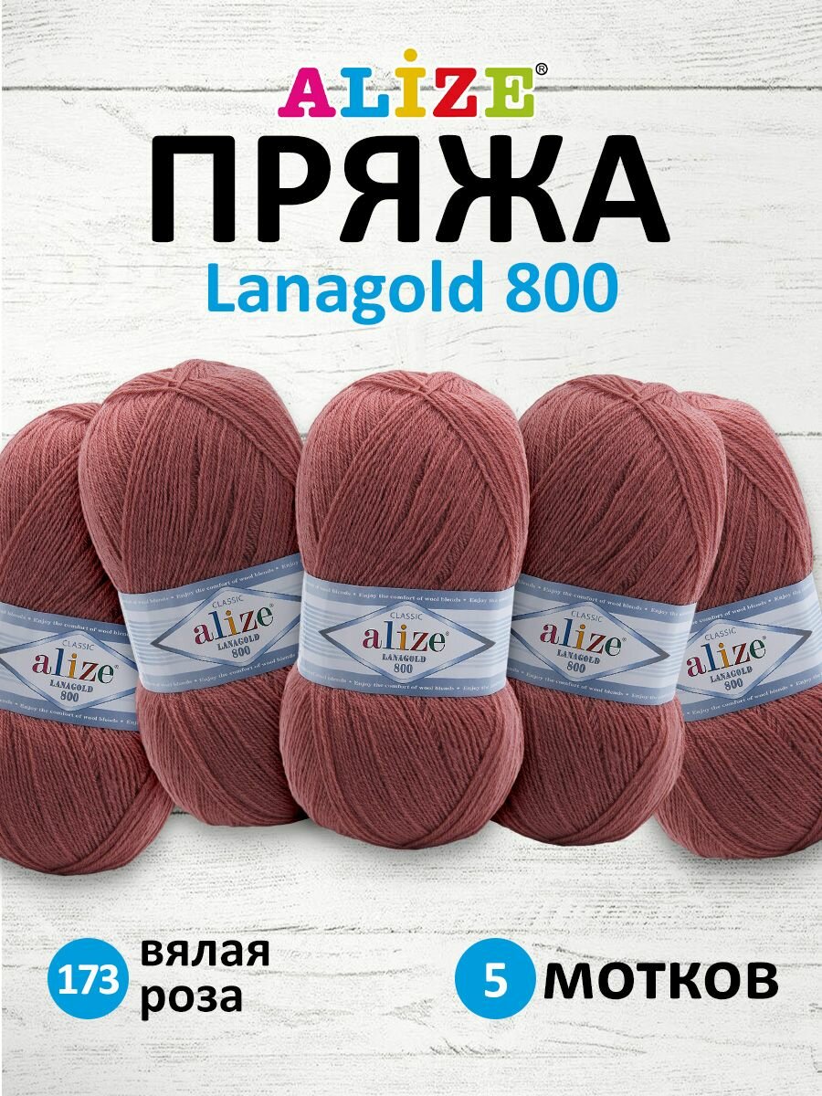 Купить Пряжа Alize Lanagold 800 увядшая роза (173), 51%акрил/49%шерсть, 800м, 100г, 5шт