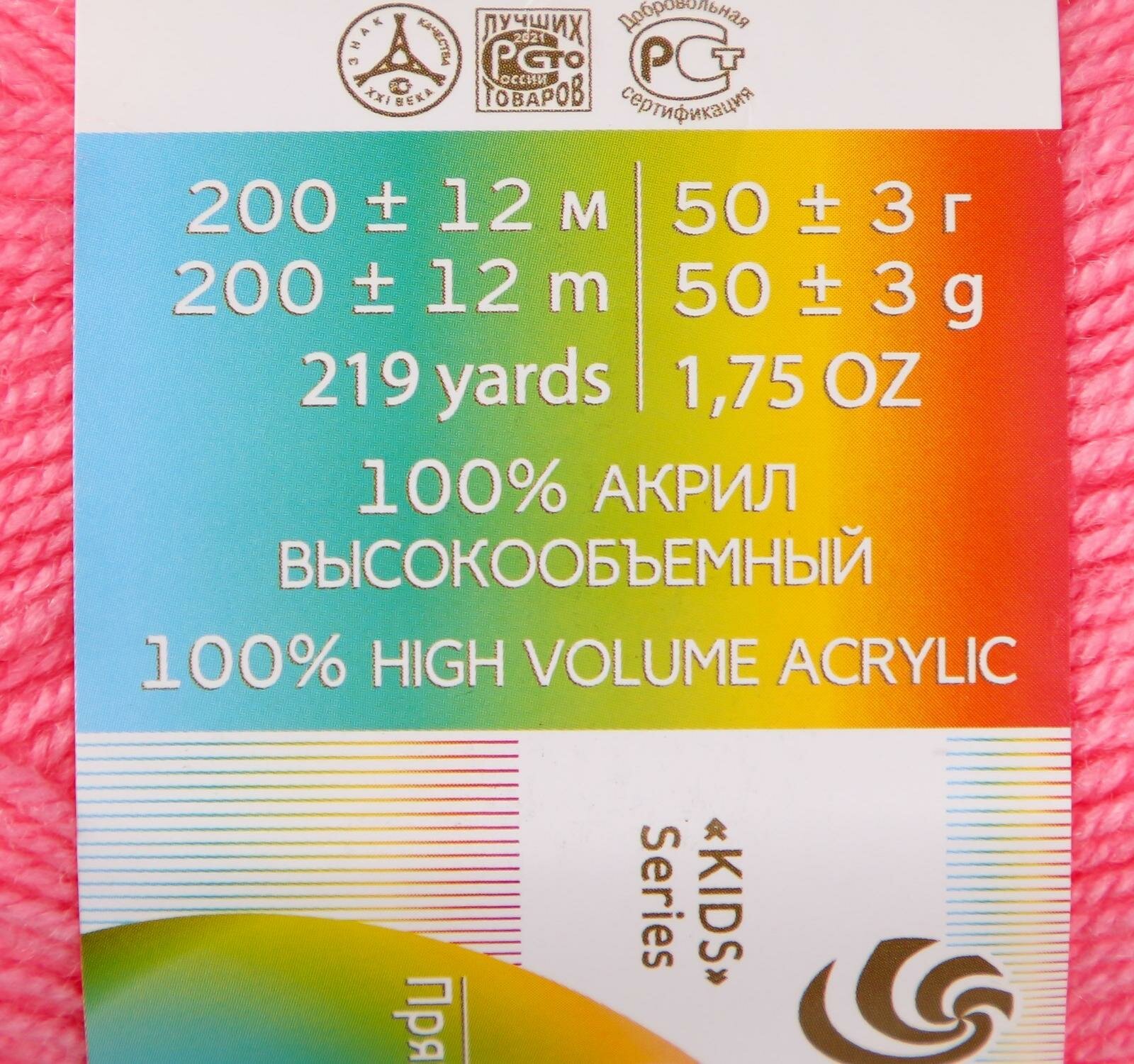 Пряжа Пехорская ПТ "Детская новинка" 100% высокообъемный акрил 10 х 50 гр 200 ±8 м. (11 яр.розовый)