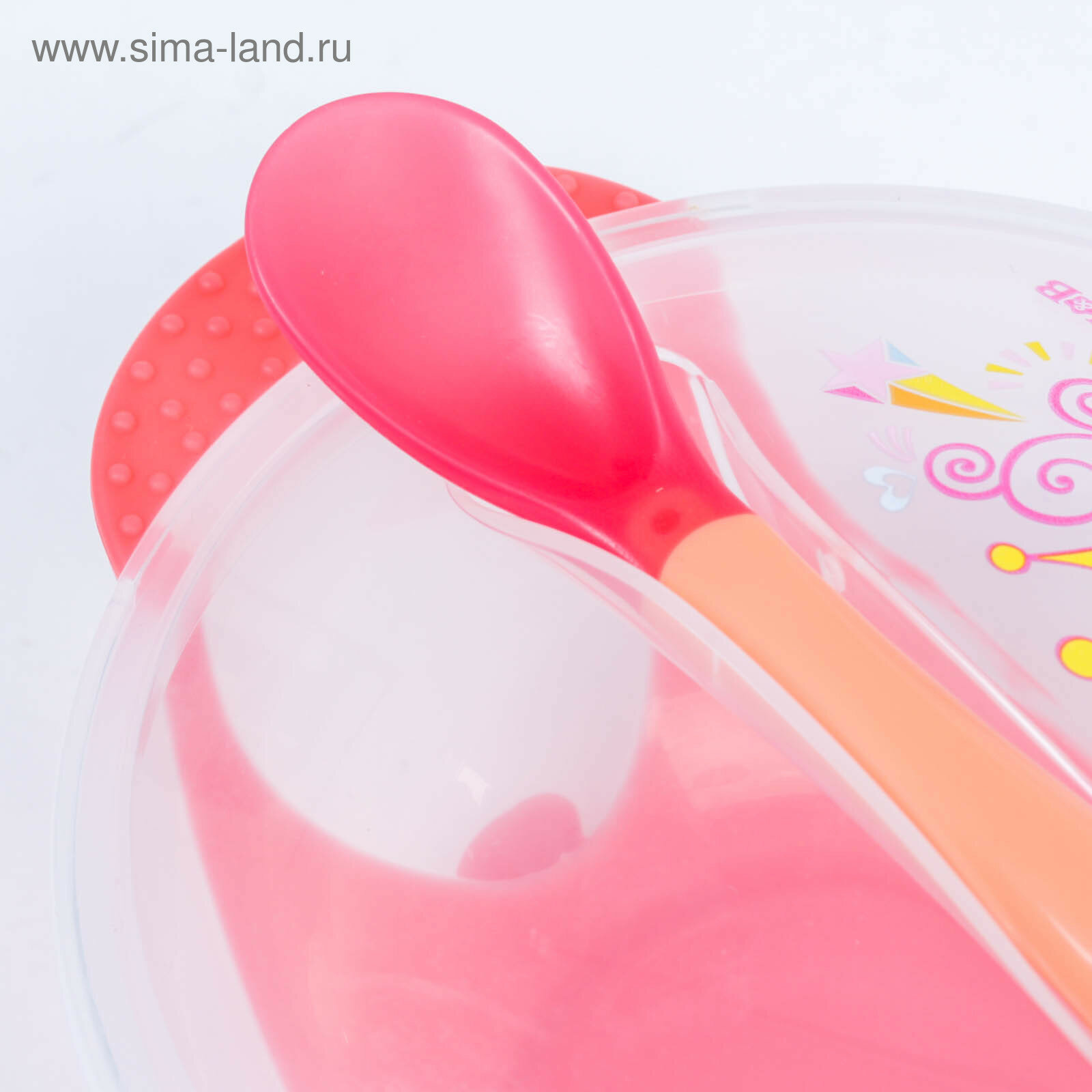 Набор для кормления «Наша принцесса», 3 предмета: миска 350 мл на присоске, крышка, ложка, цвет розовый