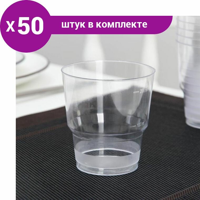 Стакан одноразовый пластиковый 200 мл прозрачный 50 штук в упаковке Комус Кристалл Стандарт