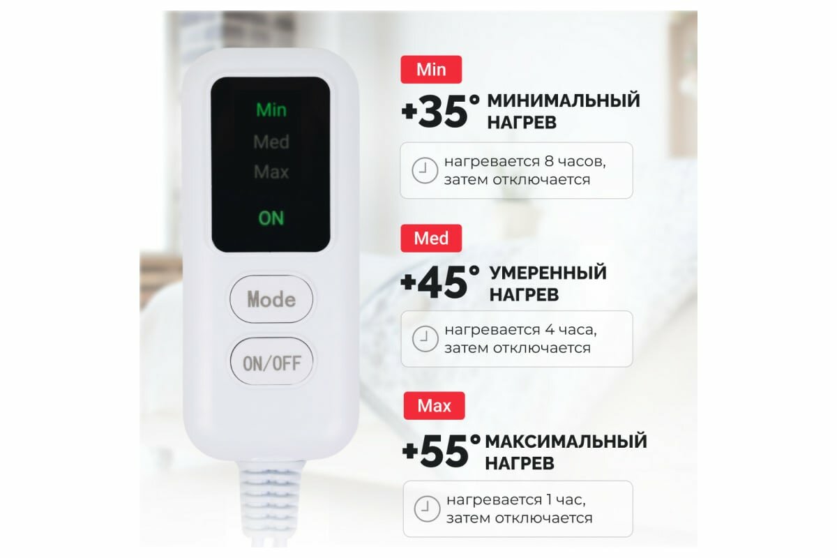 | Плюсы: | Работает идеально. Мягкое тепло. Отдельная регулировка. В осенний сезон - то, что нужно, для комфортного сна. |