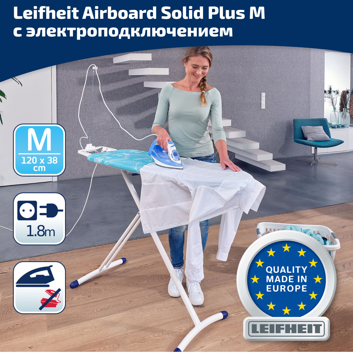 Купить Гладильная доска с электроподключением Leifheit AirBoard M Solid Plus, 120x38см