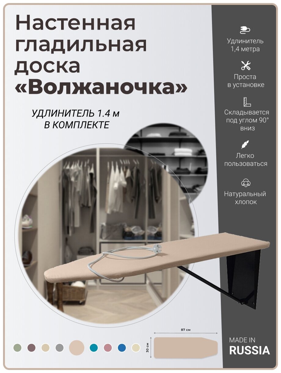 Купить Волжаночка Гладильная доска настенная, встраиваемая в шкаф с розеткой и удлинителем, размер 87х30 см., цвет бежевый