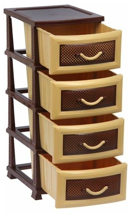 Купить Комод РОССПЛАСТ Дельфин 4 яруса РП-411/412, ШхГхВ: 38.5х47х95 см, цвет: коричневый/бежевый