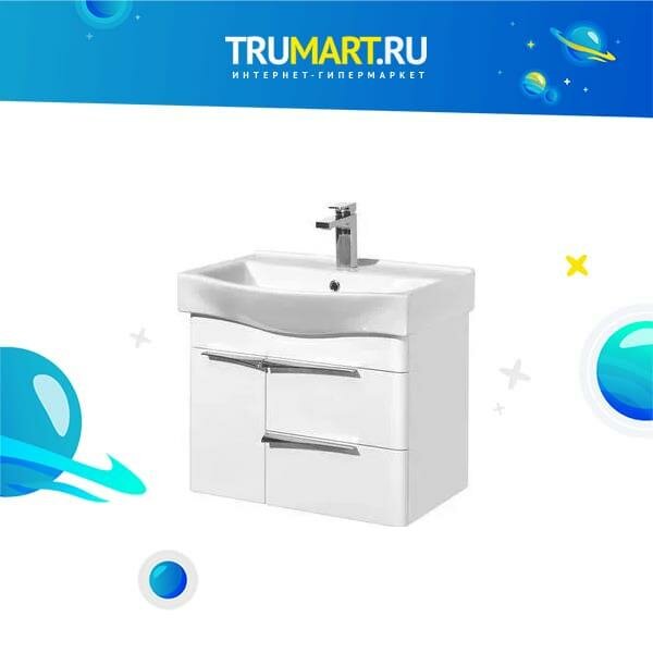 Тумба под раковину, для ванной комнаты АКВАТОН Беверли 65, ШхГхВ: 67.3х35.7х51.9 см, цвет: белый глянцевый