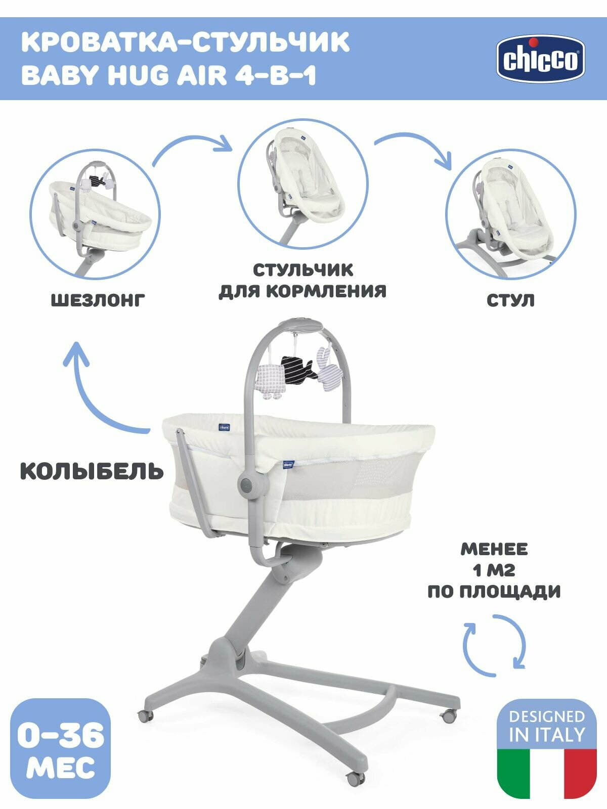 Купить Колыбель Chicco Baby Hug Air 4 в 1, white snow