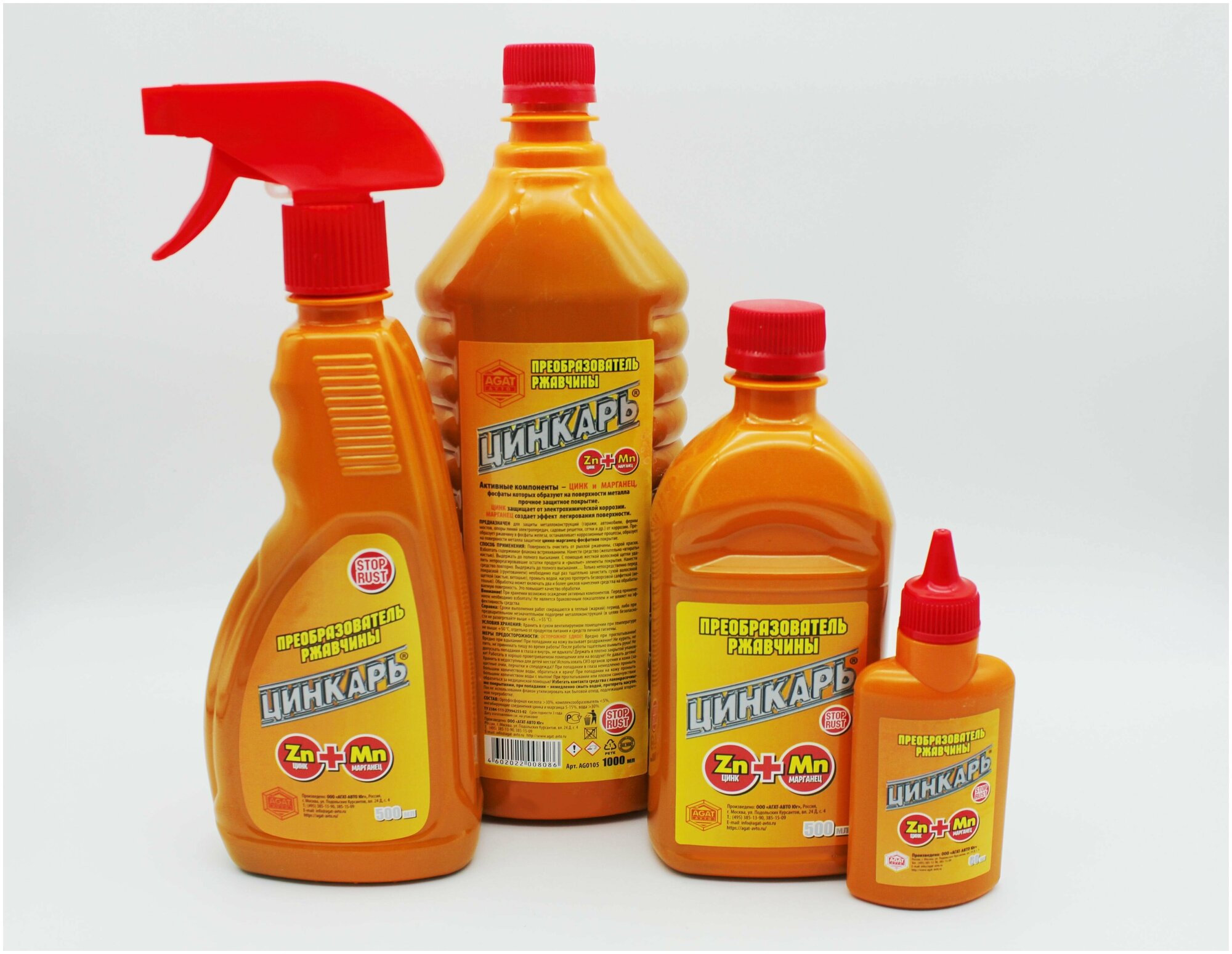 AGAT-AVTO ag0104 преобразователь ржавчины цинкарь (триггер-спрей) 500 мл.