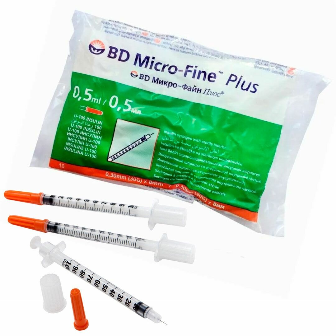 Шприц инсулиновый BD Micro-Fine Plus 0.5мл/U-100 30G (0,30 мм х 8 мм) 10 шт