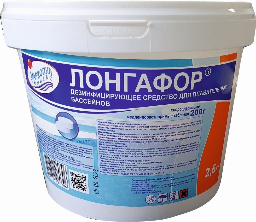 Химия для бассейна Маркопул Кэмиклс Лонгафор 2,6 кг (таблетки по 200 гр.) ведро 0032