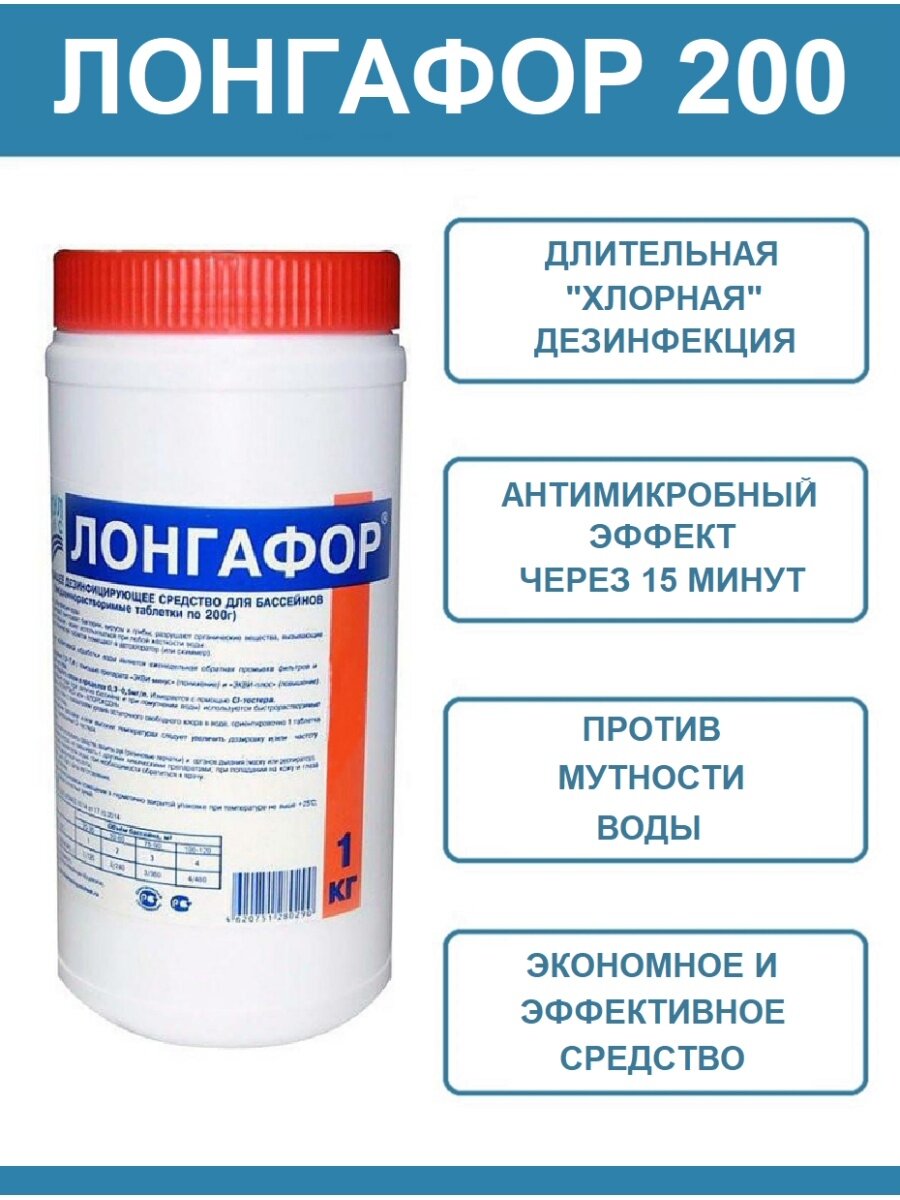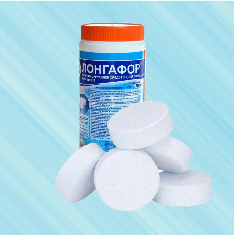 Дезинфицирующее средство "Лонгафор", таблетки 200 г, для воды в бассейне, 1 кг