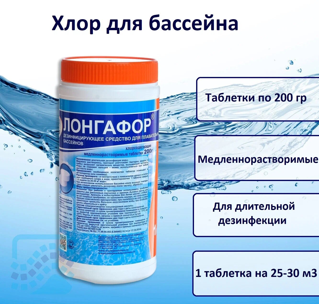 Медленнорастворимые таблетки для хлорной дезинфекции маркопул кемиклс Лонгафор