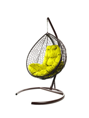 Подвесное кресло капля с ротангом коричневое, жёлтая