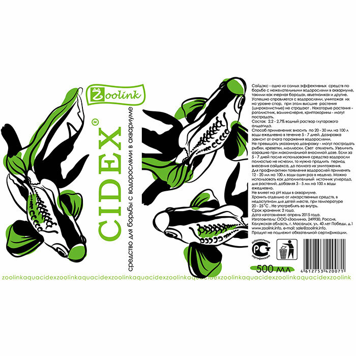 Средство для борьбы с водорослями в аквариуме Zoolink Cidex 500мл .