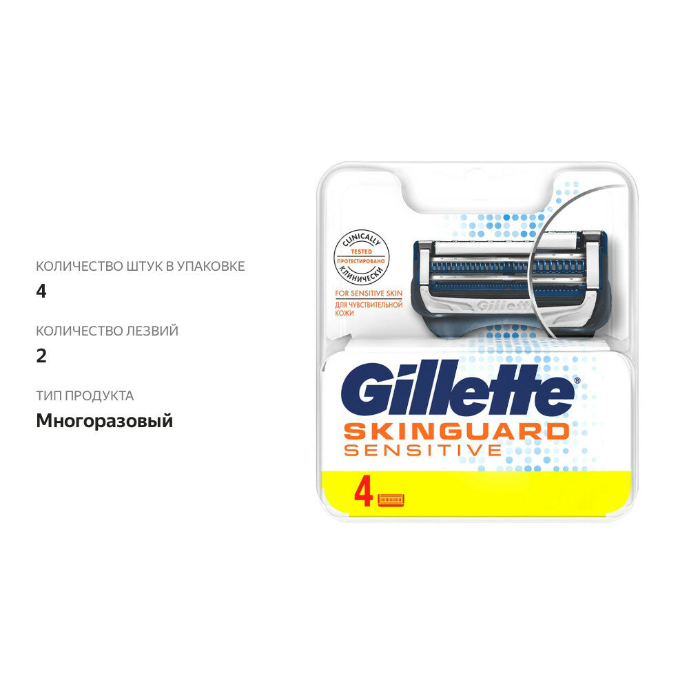 Кассеты для бритья Gillette Skinguard Sensitive, сменные, 4 шт - Procter and Gamble