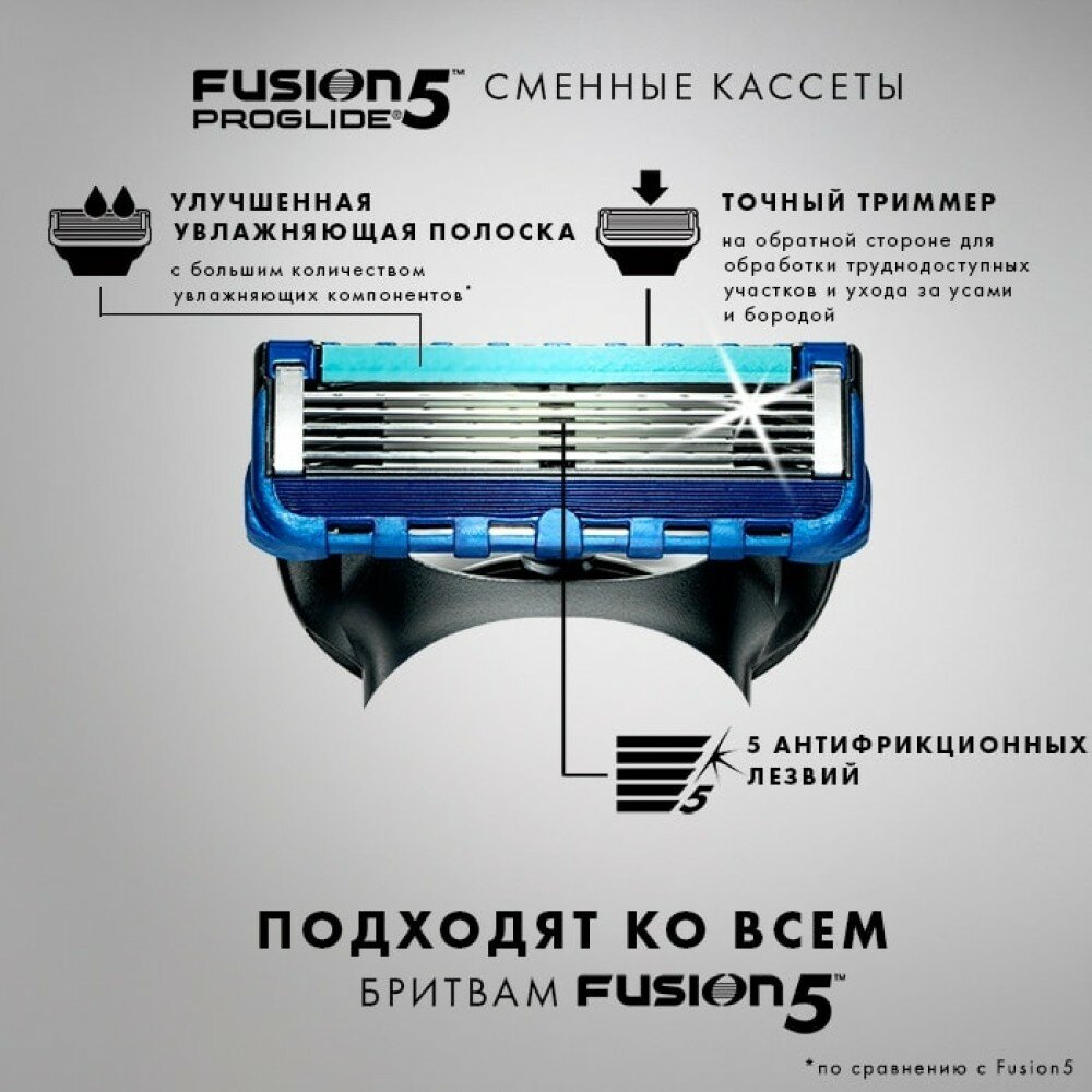 Сменные кассеты Gillette Fusion ProGlide Для Мужской Бритвы, с 5 лезвиями, с точным тримммером для труднодоступных мест, для идеально гладкого бритья