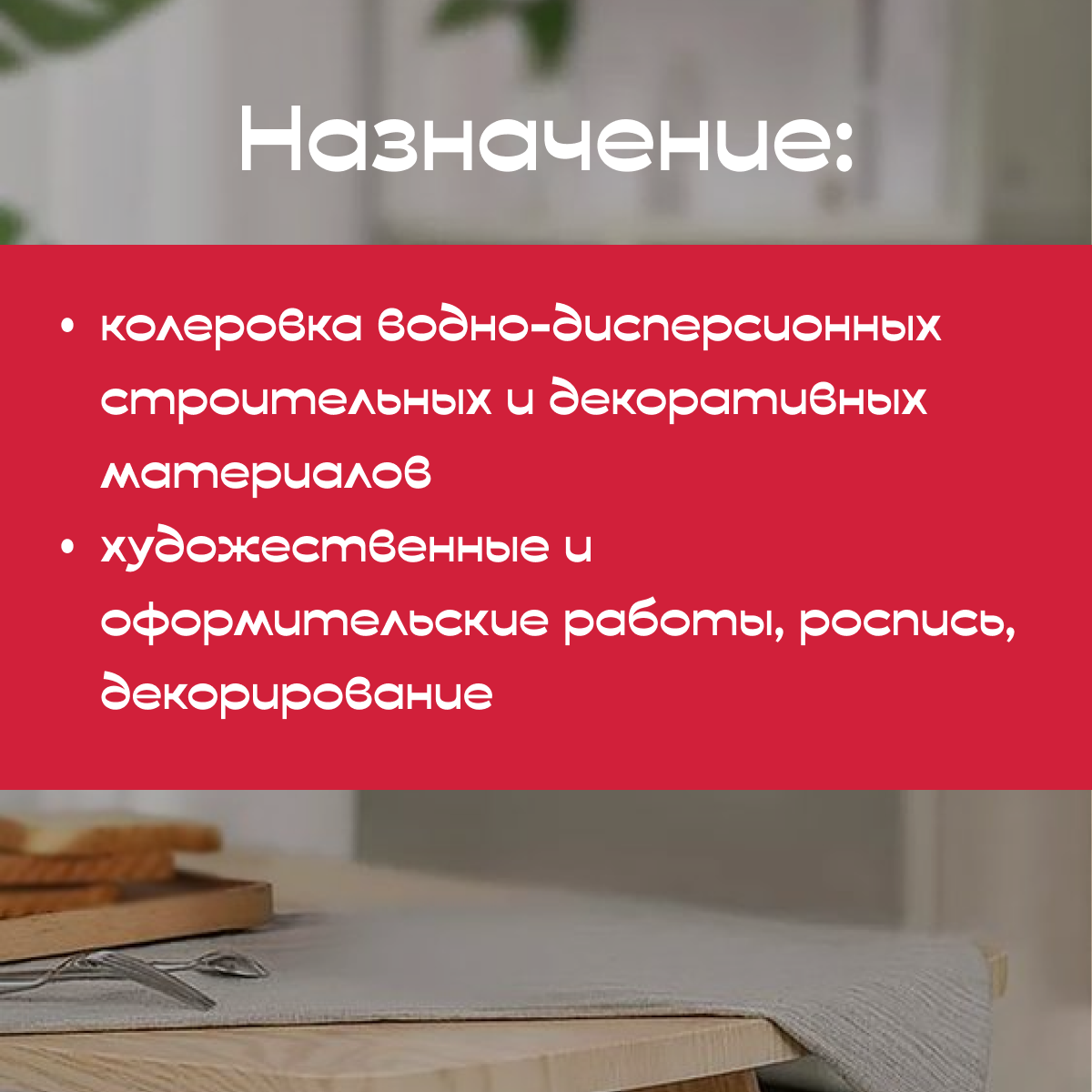 | Назначение | для водоэмульсионных и дисперсных красок |
