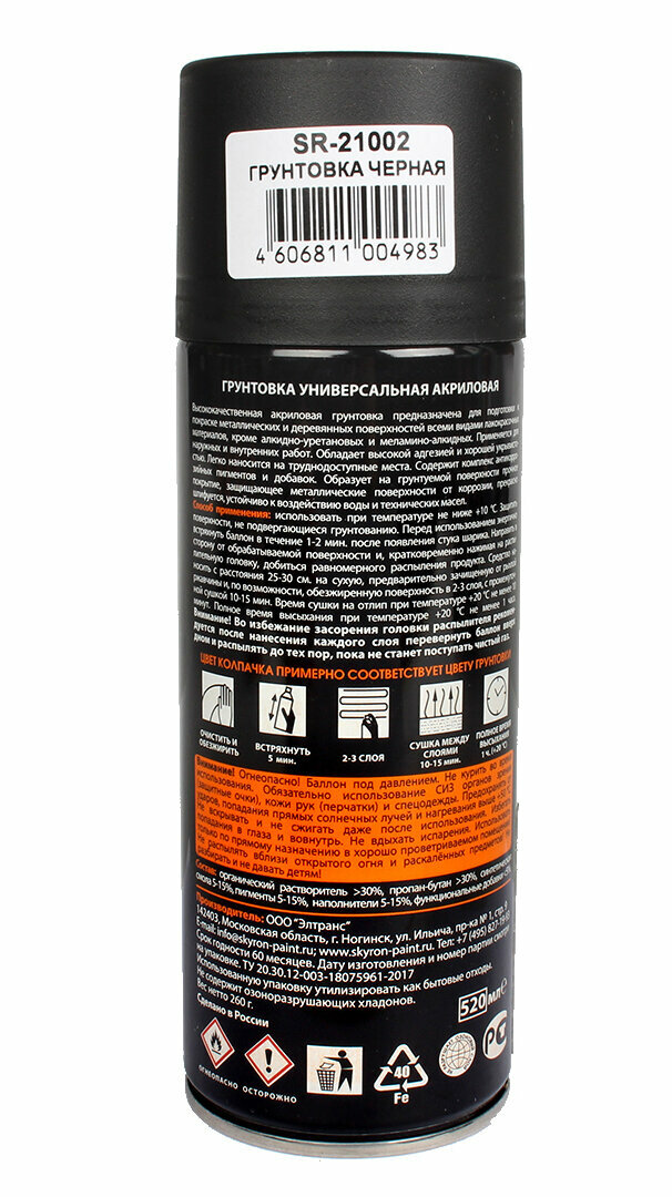 Грунтовка универсальная акриловая черная аэрозоль 520 мл SKYRON SR-21002