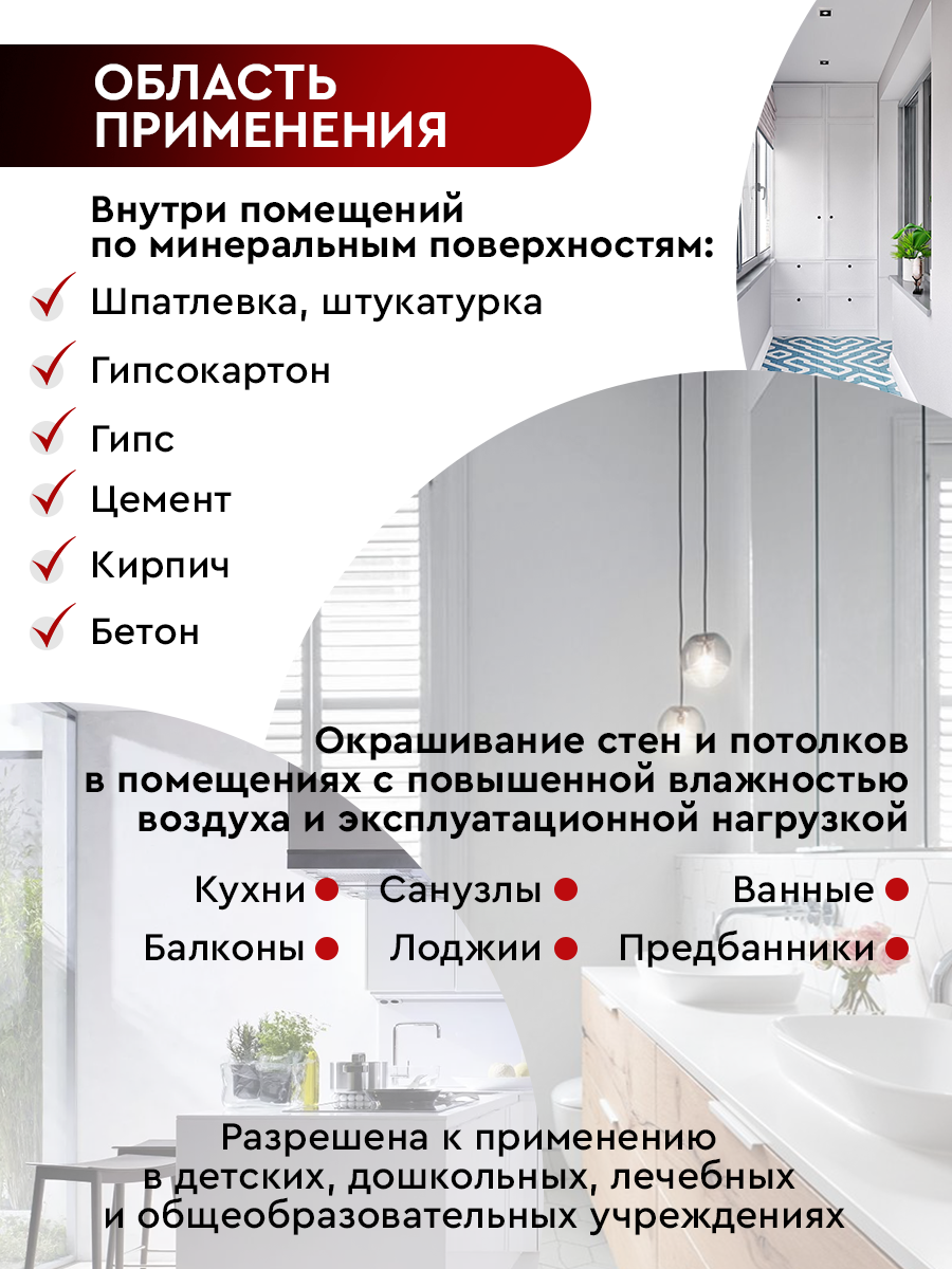 Краска Dali / Дали для кухни и ванной глубокоматовая, 9л, белый