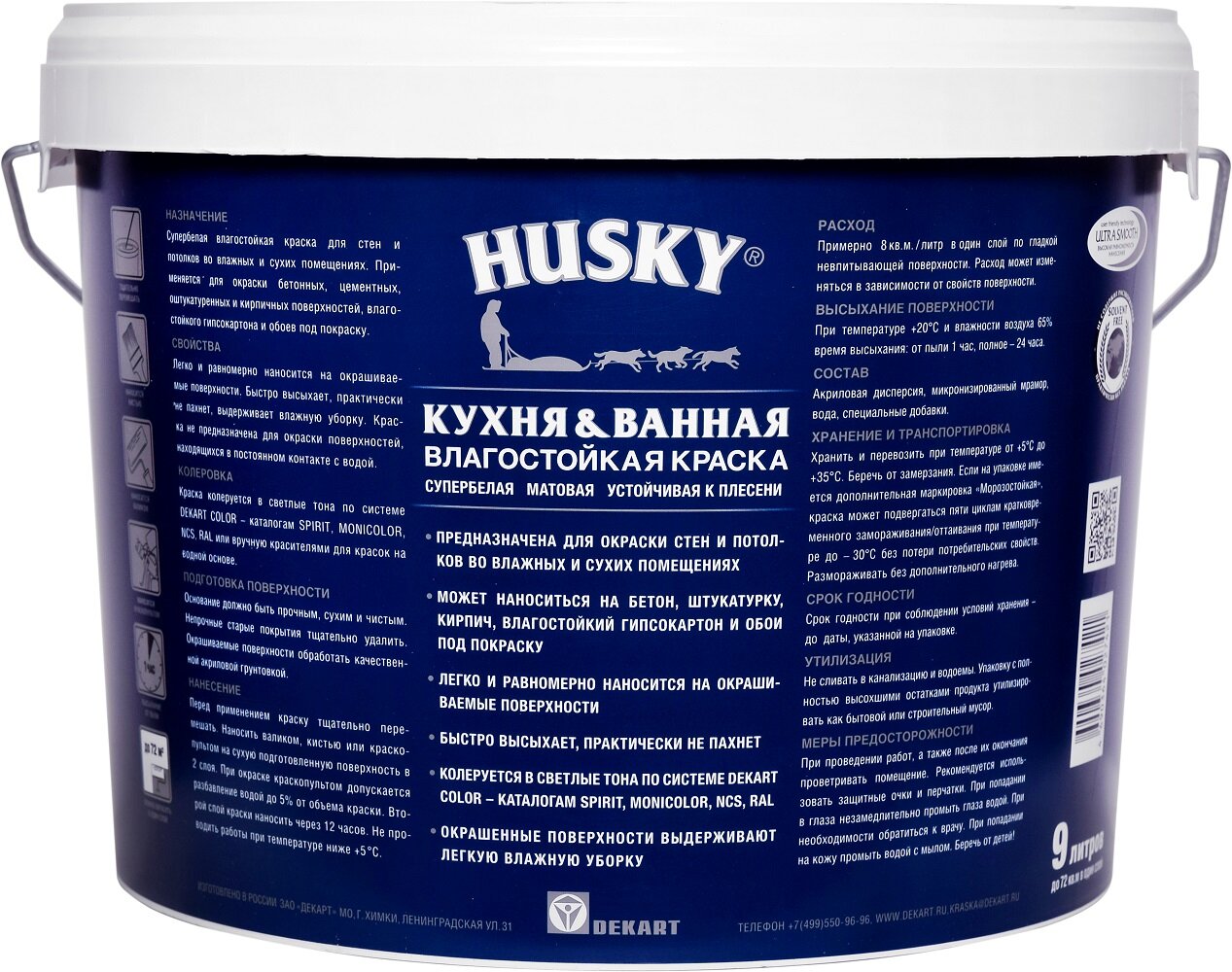 Краска влагостойкая HUSKY для кухни и ванной комнаты 9л