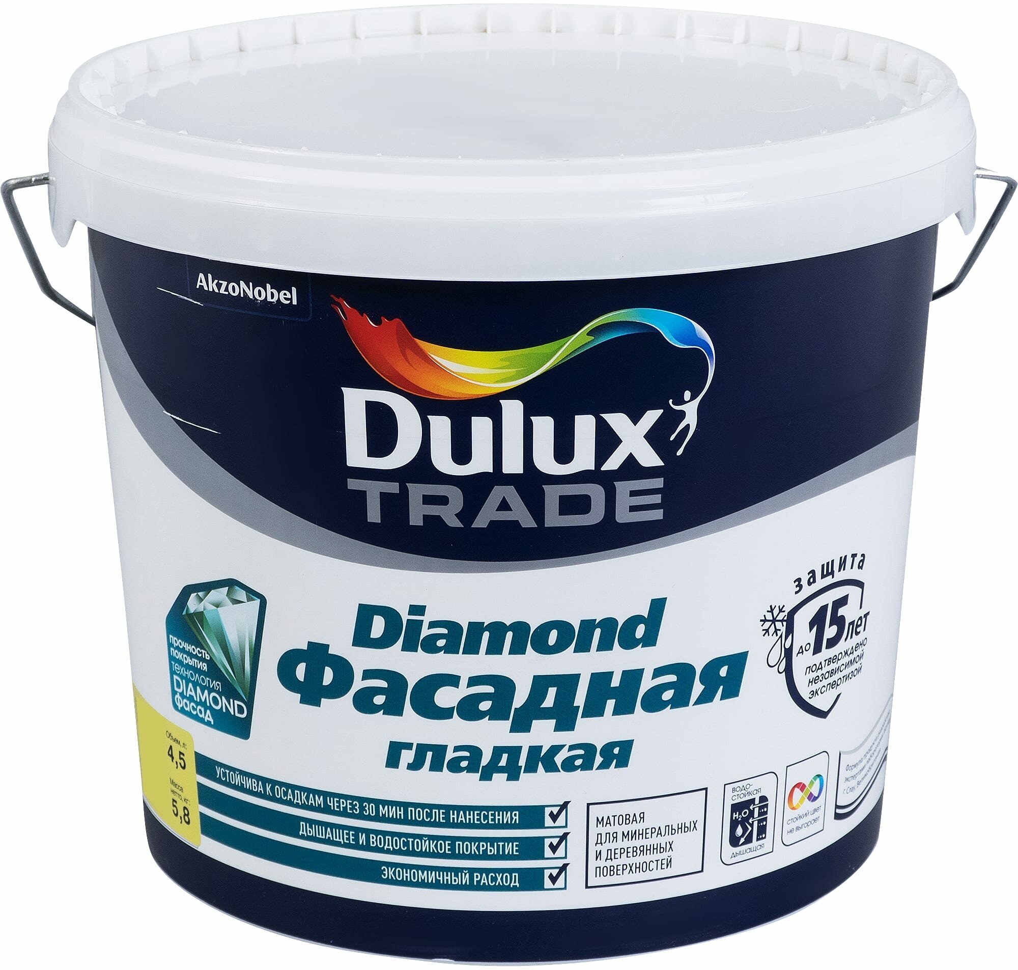 DULUX Diamond Фасадная гладкая база BC прозрачная краска акриловая (4,5л) / DULUX Diamond Фасадная гладкая base BC под колеровку краска акриловая влаг