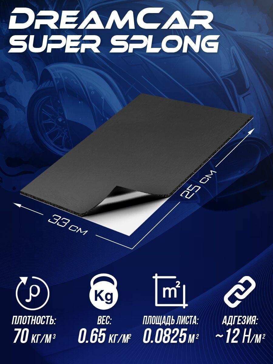 DreamCar Technology 10 листов - Звукоизоляция с повышенным звукопоглощением DreamCar Super Splong 10мм 33х25см - 10 листов интересное:
