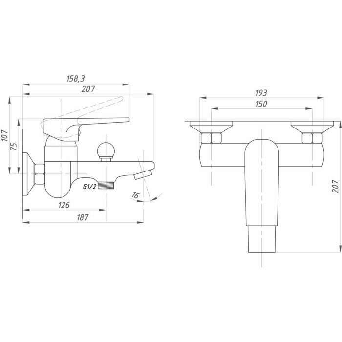 | Длина излива | 187 мм |