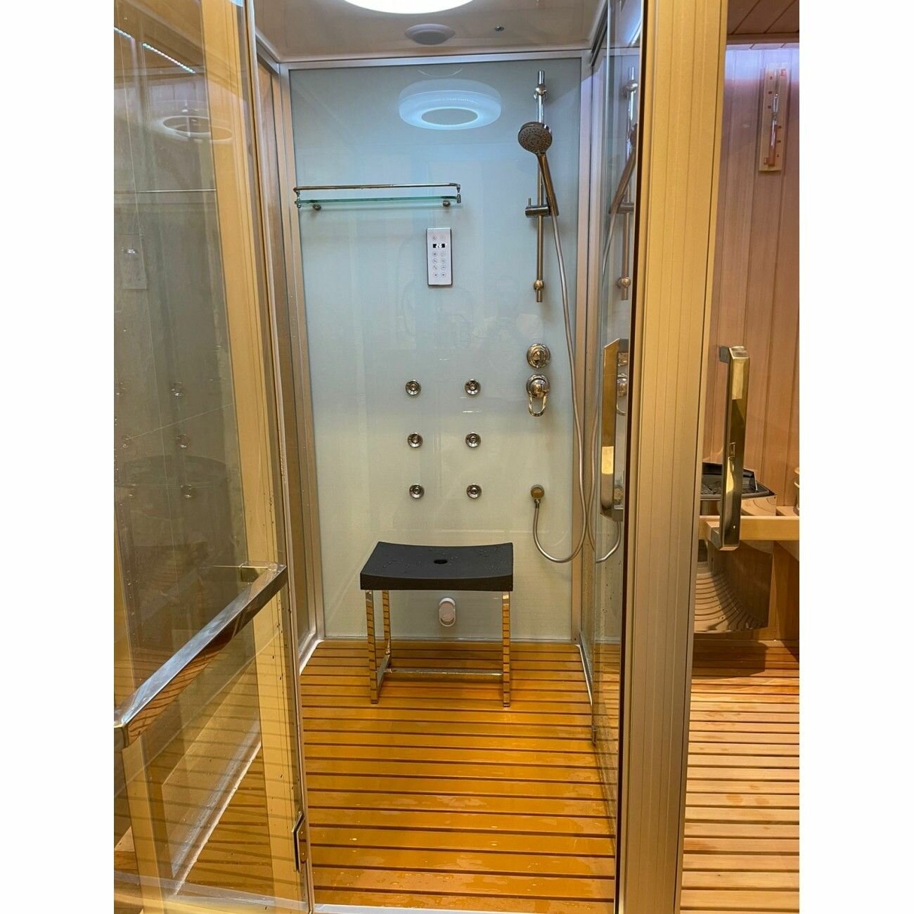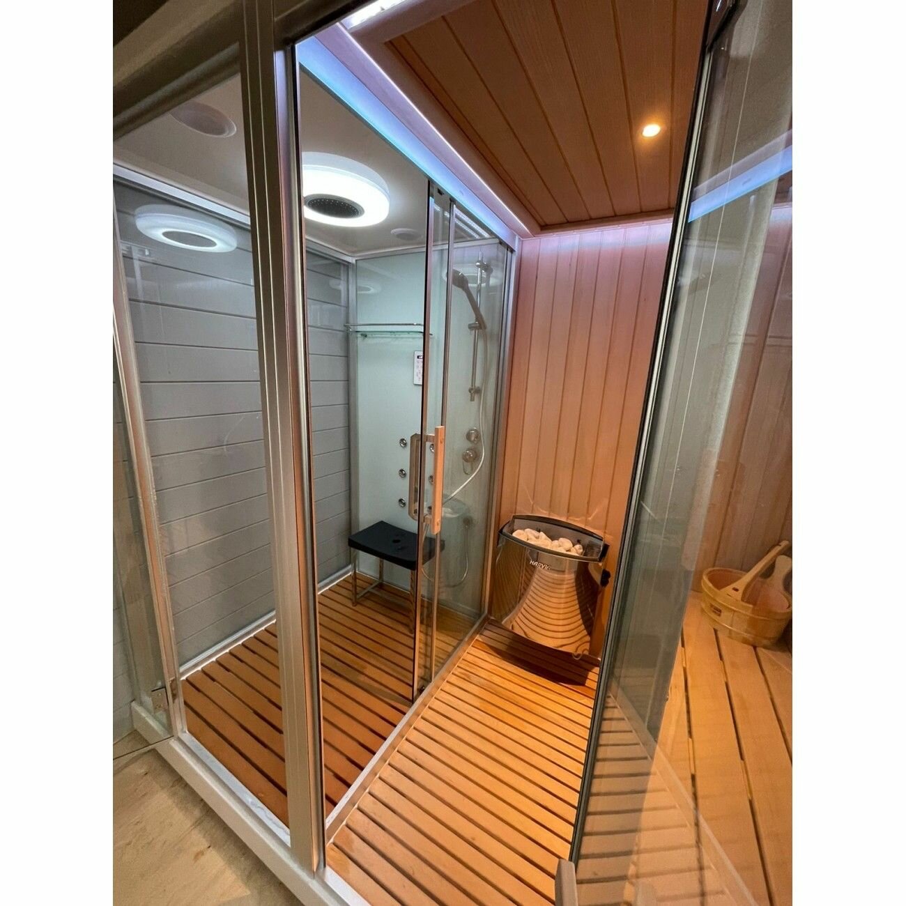 Заказывал сауну вместе с установкой себе в дом. Жена сказала что ей важно чтобы так же мы приобрели душевую кабину! Вот тут и мы с ней и убили двух зайцев! Сауна комбинированная! В ней можно как посидеть в молоке и хорошенько пропариться так и следом перейти в зону душевой кабины и принять душ с приятной музыкой! Я очень доволен покупкой и если потребуется еще одна в мой родной город то я обязательно приобрету её! Спасибо производителю за то что учел абсолютно все детали этого товара! Очень приятно что все таки есть еще на рынке достойные производители на которых можно положиться! |