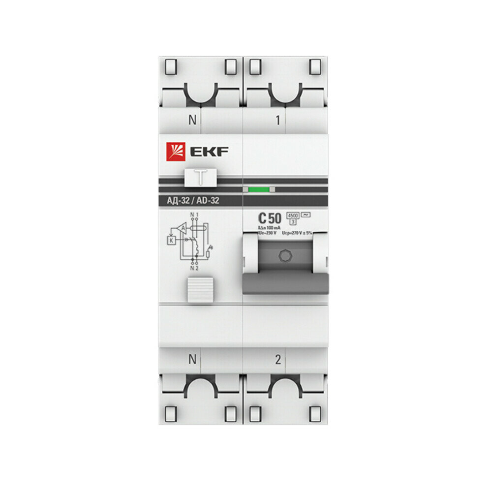 Дифференциальный автомат АД-32 1P-N 50А-100мА (хар. C, AC, электронный, защита 270В) 4,5кА EKF PROxima