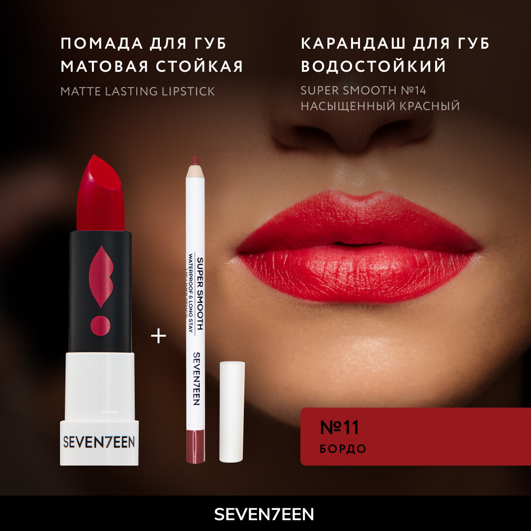 Ниже Вы можете прочитать отзывы на Seventeen Помада для губ Matte Lasting Lipstick, тон 11 бордо, ознакомится с подробными характеристиками, посмотреть интересные обзоры и фотографии на Seventeen Помада для губ Matte Lasting Lipstick, тон 11 бордо.