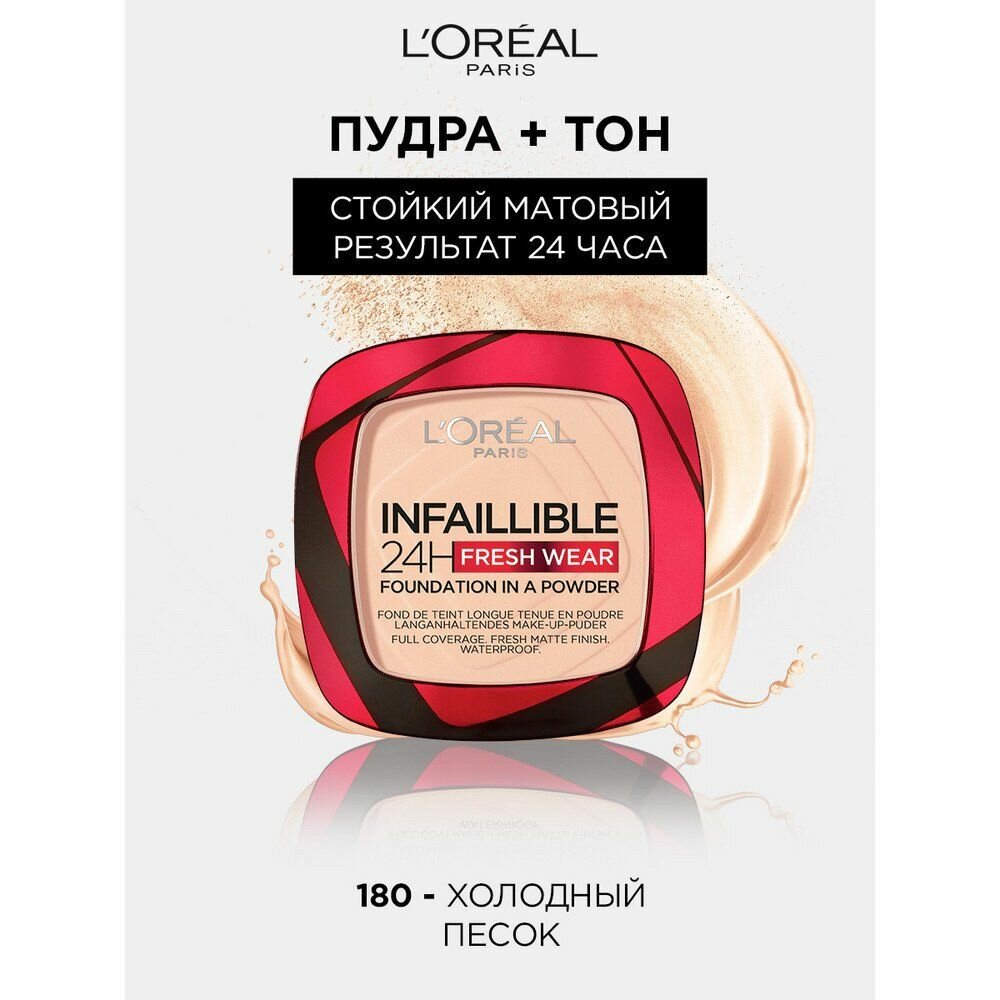 Пудра L'Oreal Paris Infaillible 24h Fresh Wear, тон: 180 холодный песок, 9г