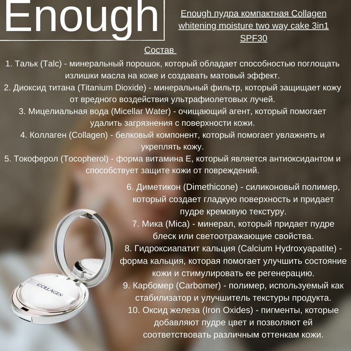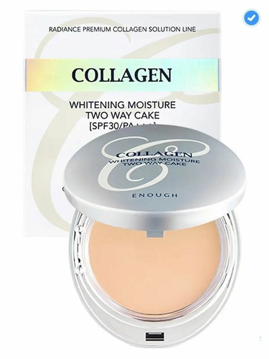 СохранитьПудра компактная для лица `ENOUGH` COLLAGEN WHITENING MOISTURE TWO-WAY CAKE SPF 28 PA++ со сменным блоком, тон 21 интересное: