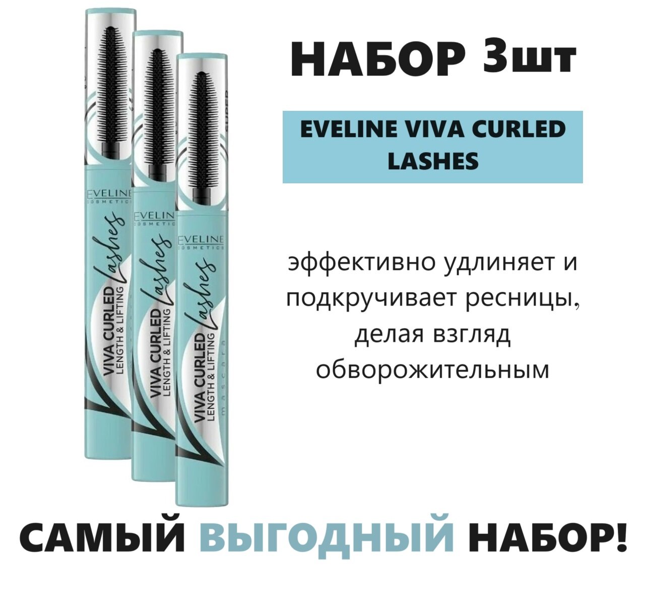 СохранитьНабор 3шт. Eveline Cosmetics Тушь для ресниц Viva Curled Lashes!, черный интересное:
