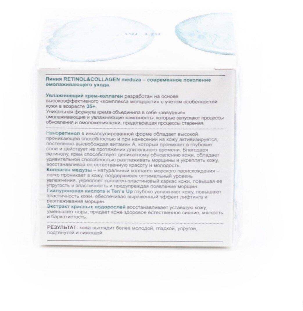 Retinol&collagen meduza крем-коллаген для лица шеи кожи вокруг глаз 35+ антивозрастной 24ч с гиалуроновой кислотой 45мл, ночной дневной, косметика