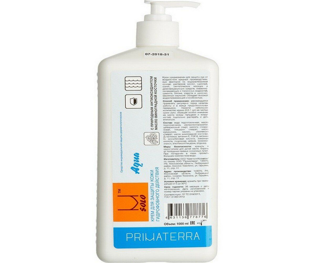 Крем для защиты кожи гидрофобного действия TM Primaterra M Solo Aqua флакон с помпой 1000 мл 8776