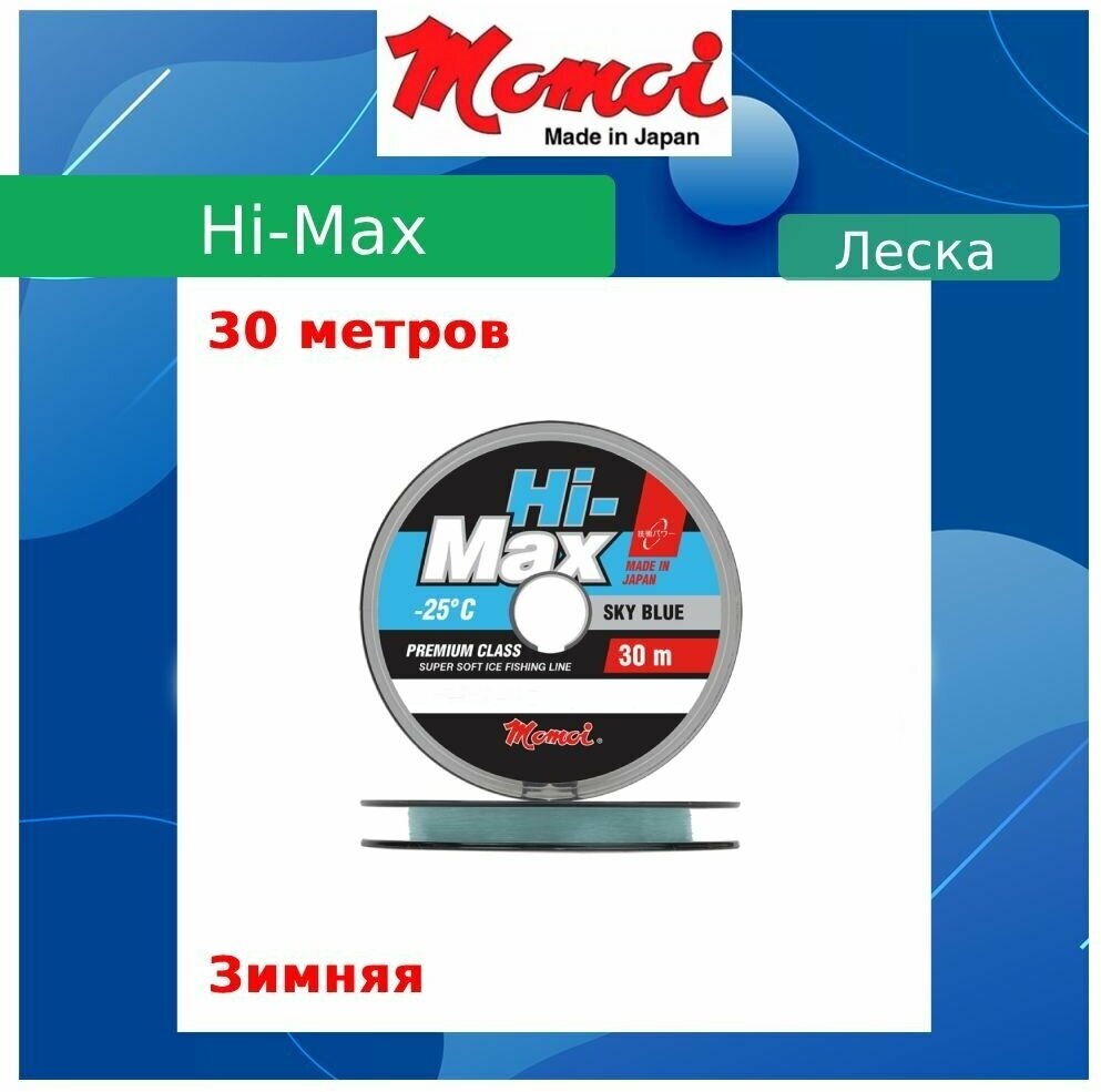 Монофильная леска Momoi Hi-Max d=0.18 мм, 30 м, 3.5 кг, sky blue, 1 шт.