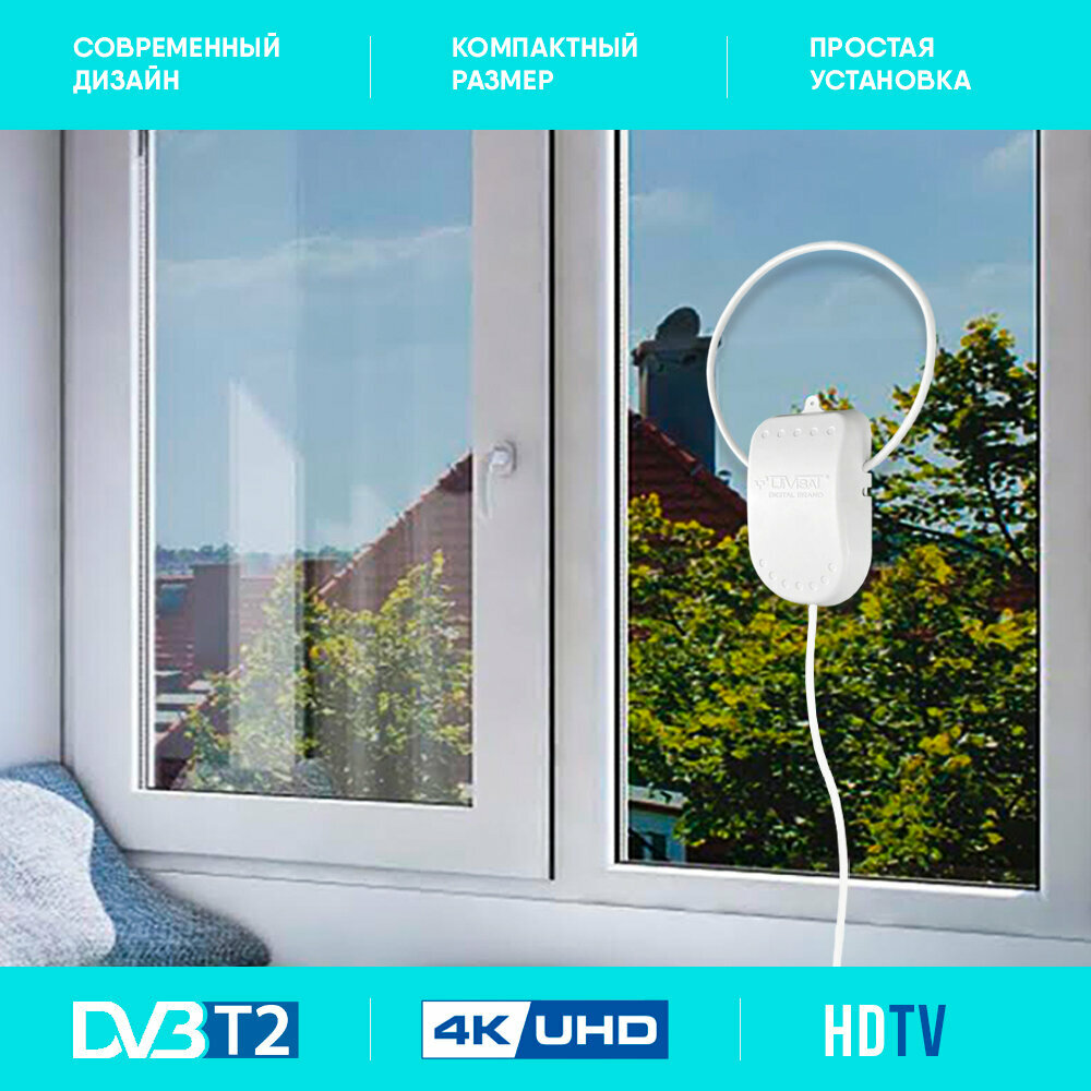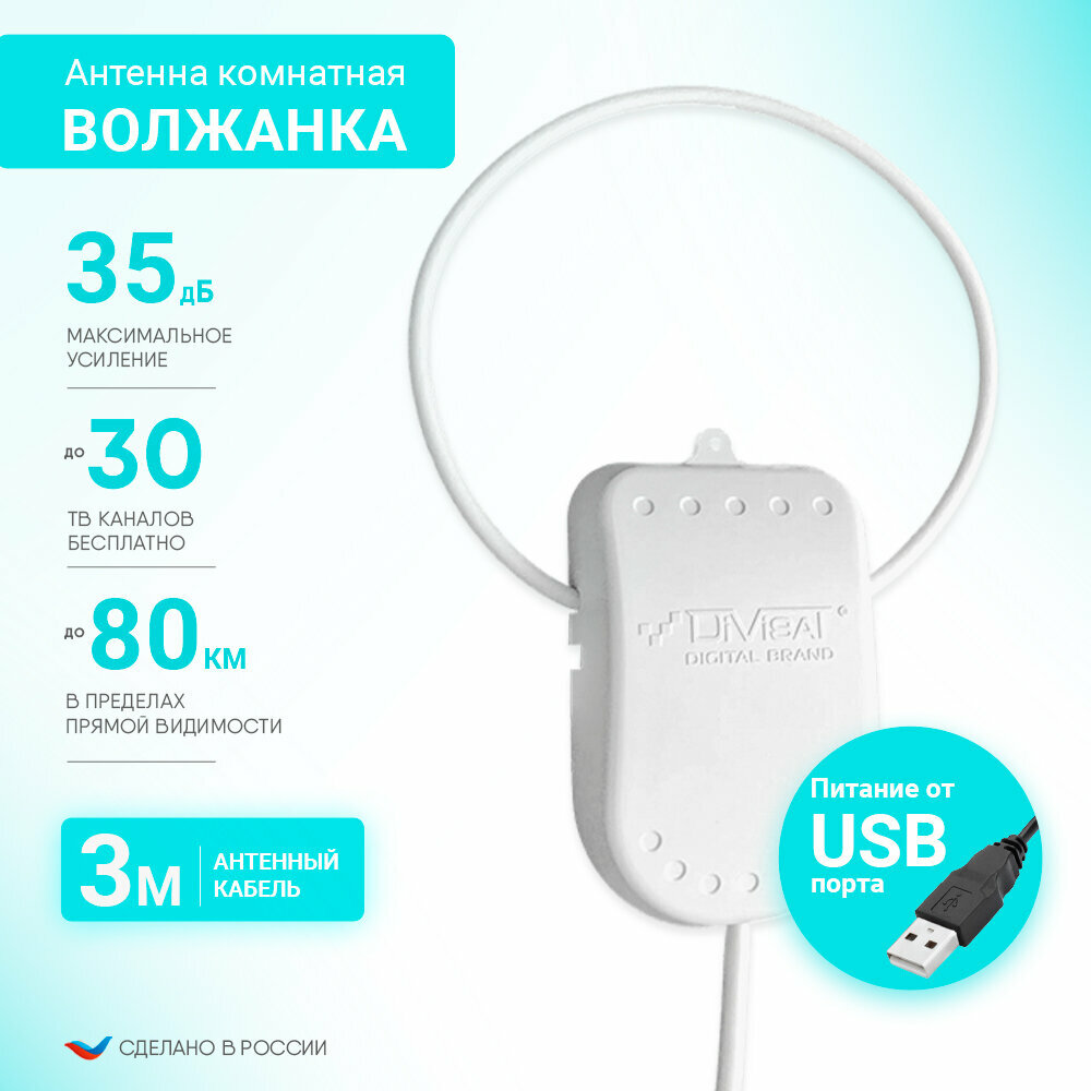 Антенна комнатная, Активная, для Цифрового ТВ, Волжанка, USB, 5м, с присоской