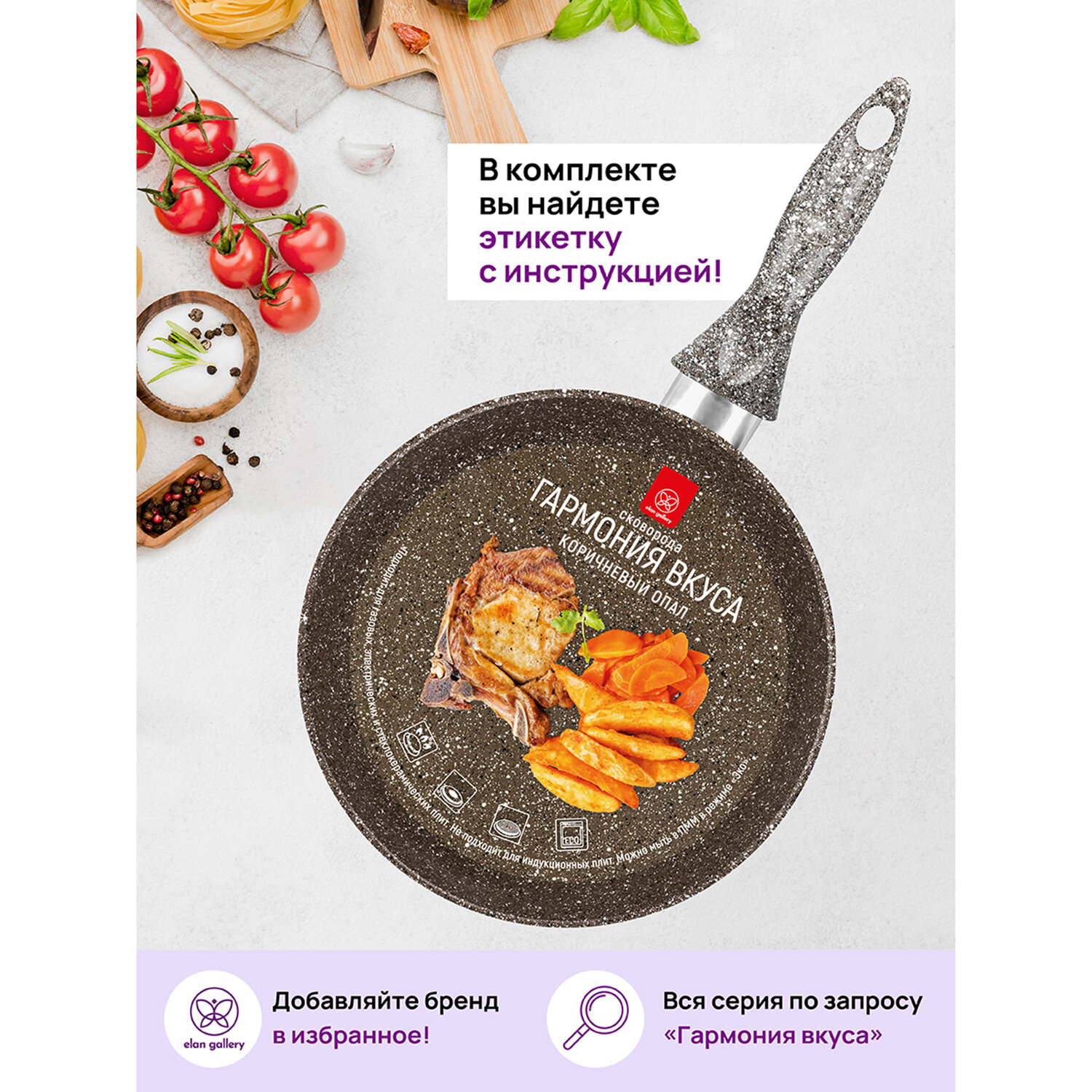 Сковорода глубокая Elan Gallery гармония вкуса Коричневый опал, несъёмная ручка, 18 см интересное: