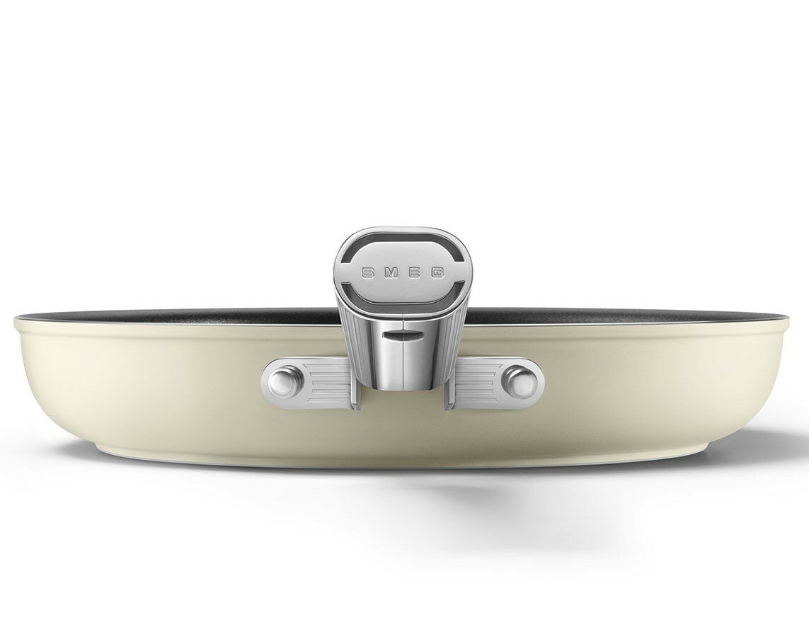 Сковорода с двумя ручками и крышкой SMEG CKFD2811CRM / 28 см / антипригарное покрытие / кремовая