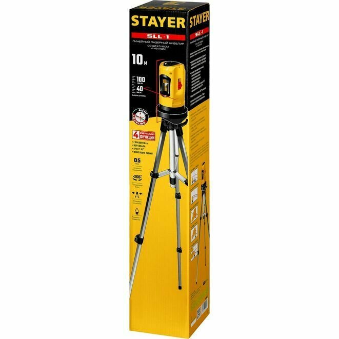 STAYER SLL-1 нивелир лазерный, 10м, точн. +/-0,5 мм/м, штатив, сумка