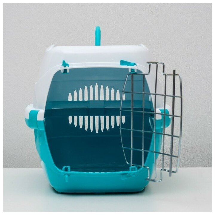 Переноска для животных до 9 кг "Пижон", металлическая дверь, 43х29х27,5 см, бело-бирюзовая 4815028