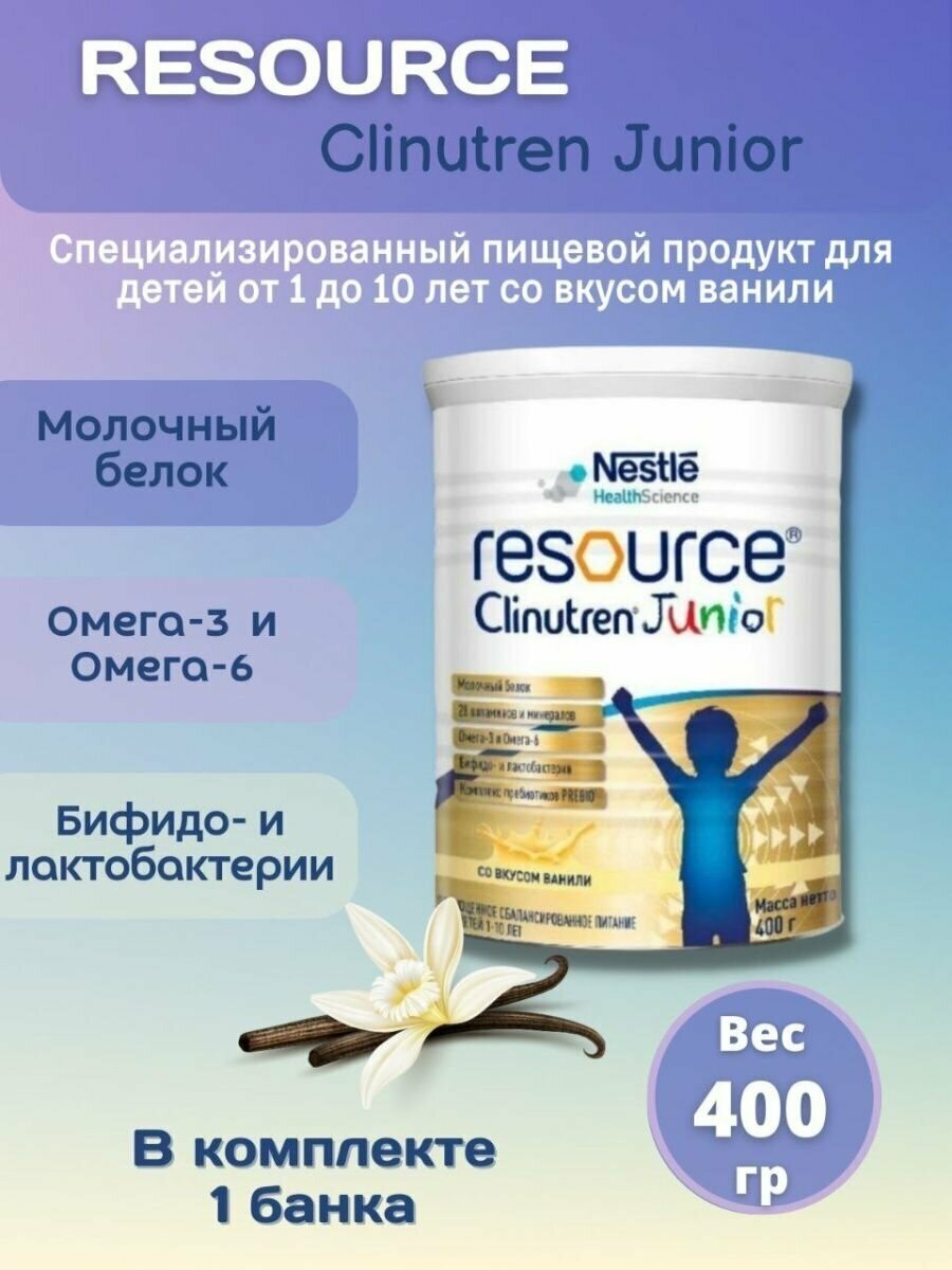 Смесь Nestle Ресурс Клинутрен Юниор с ароматом ванили, с 12 месяцев, 400г