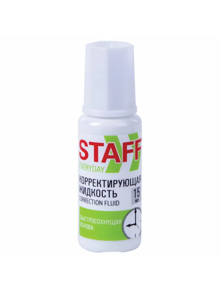 Корректирующая жидкость STAFF "Everyday" быстросохнущая, 15 мл, с кисточкой, 229398 В комплекте: 18шт.