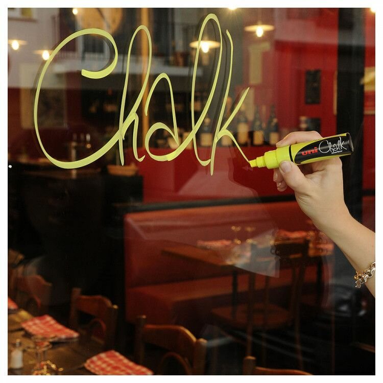 Маркер стираемый UNI для окон, стекла и досок Chalk, на меловой основе, 8 мм, желтый (PWE-8K F.YELLOW)