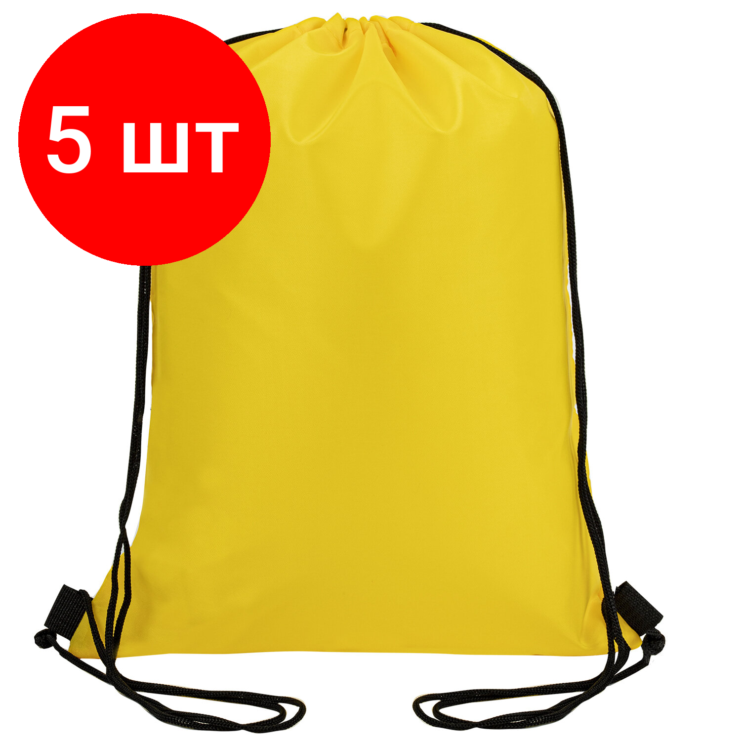 Комплект 5 шт, Мешок для обуви BRAUBERG прочный, на шнурке, желтый, 42x33 см, 227142