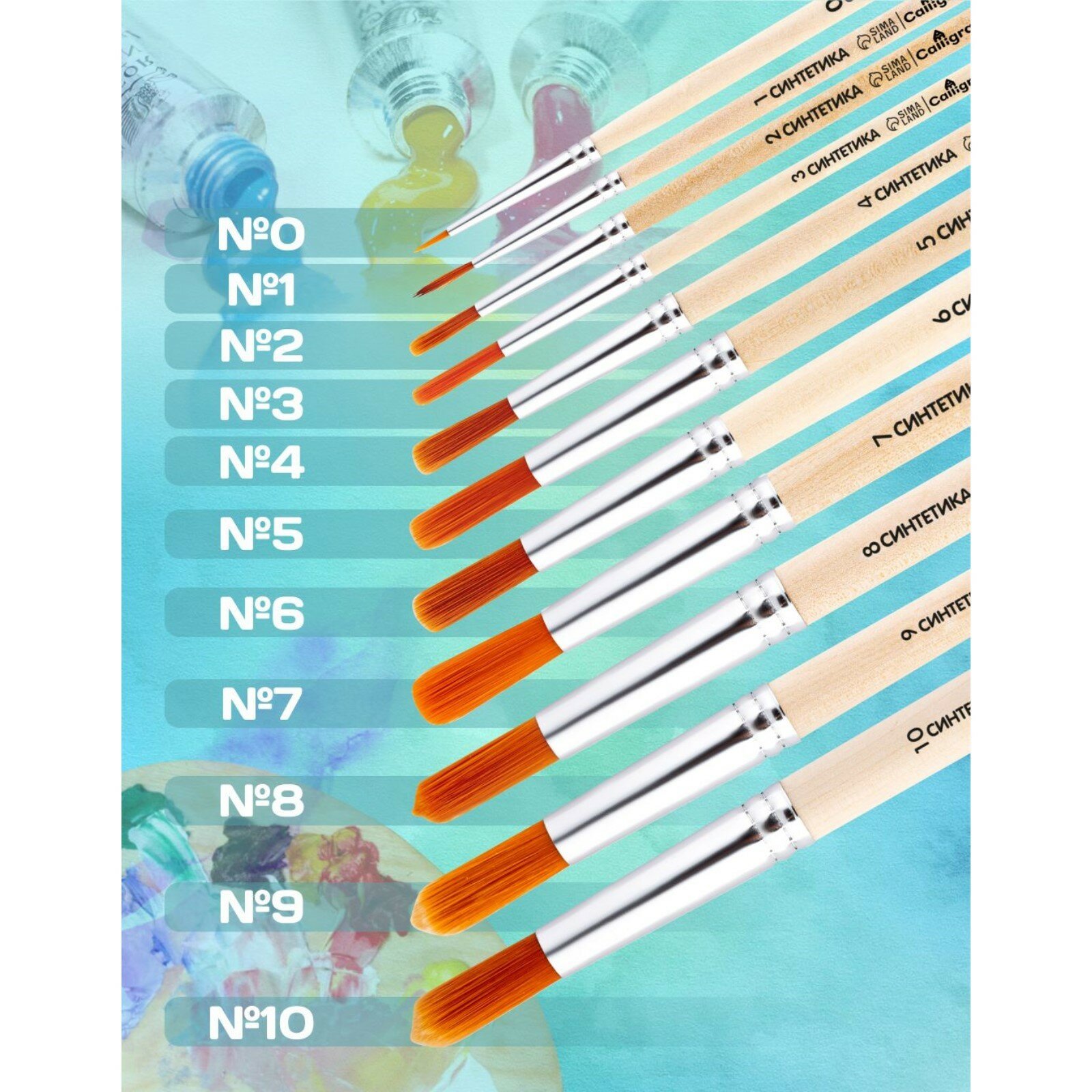 Купить Кисть Синтетика Круглая № 8 (диаметр обоймы 8 мм; длина волоса 26 мм), деревянная ручка,