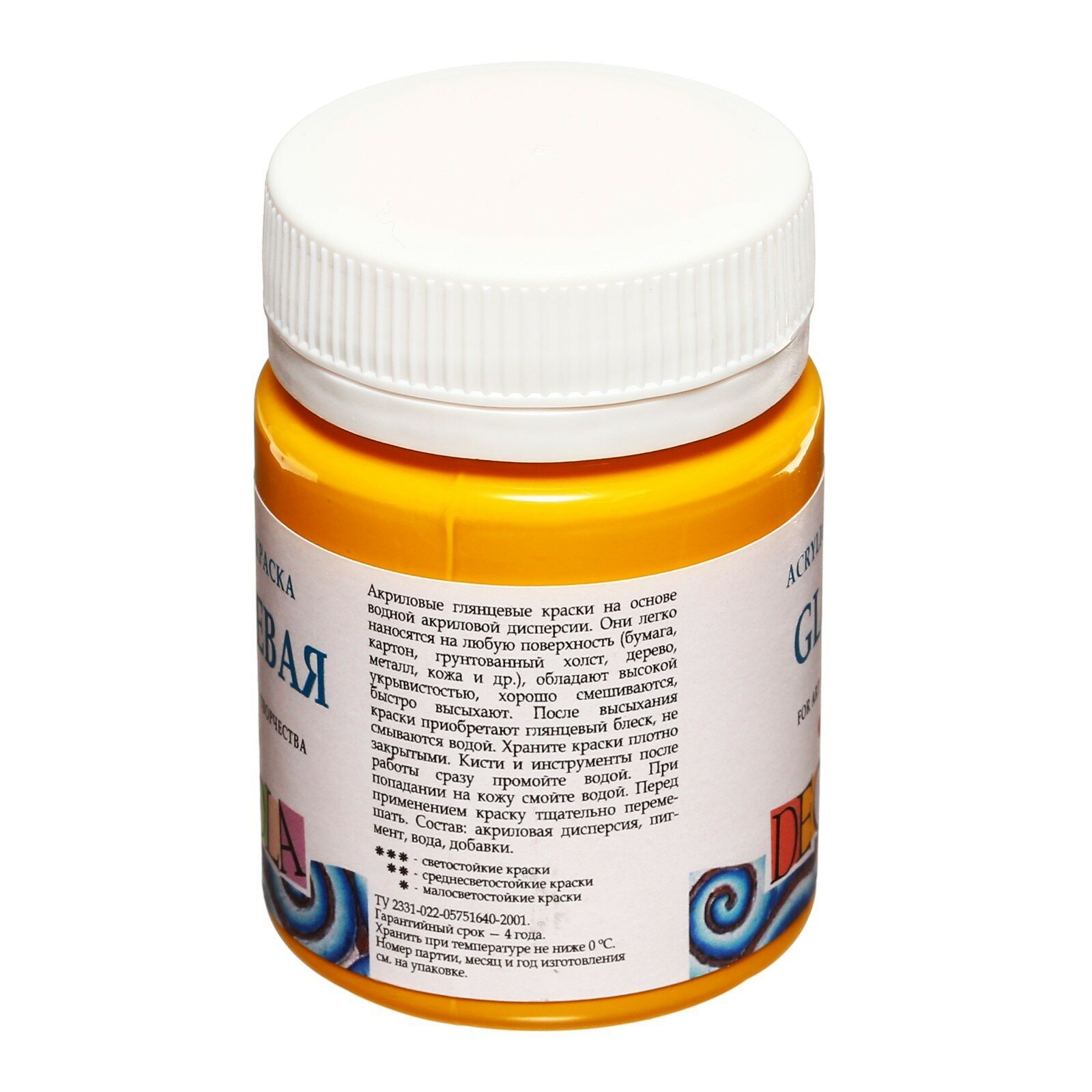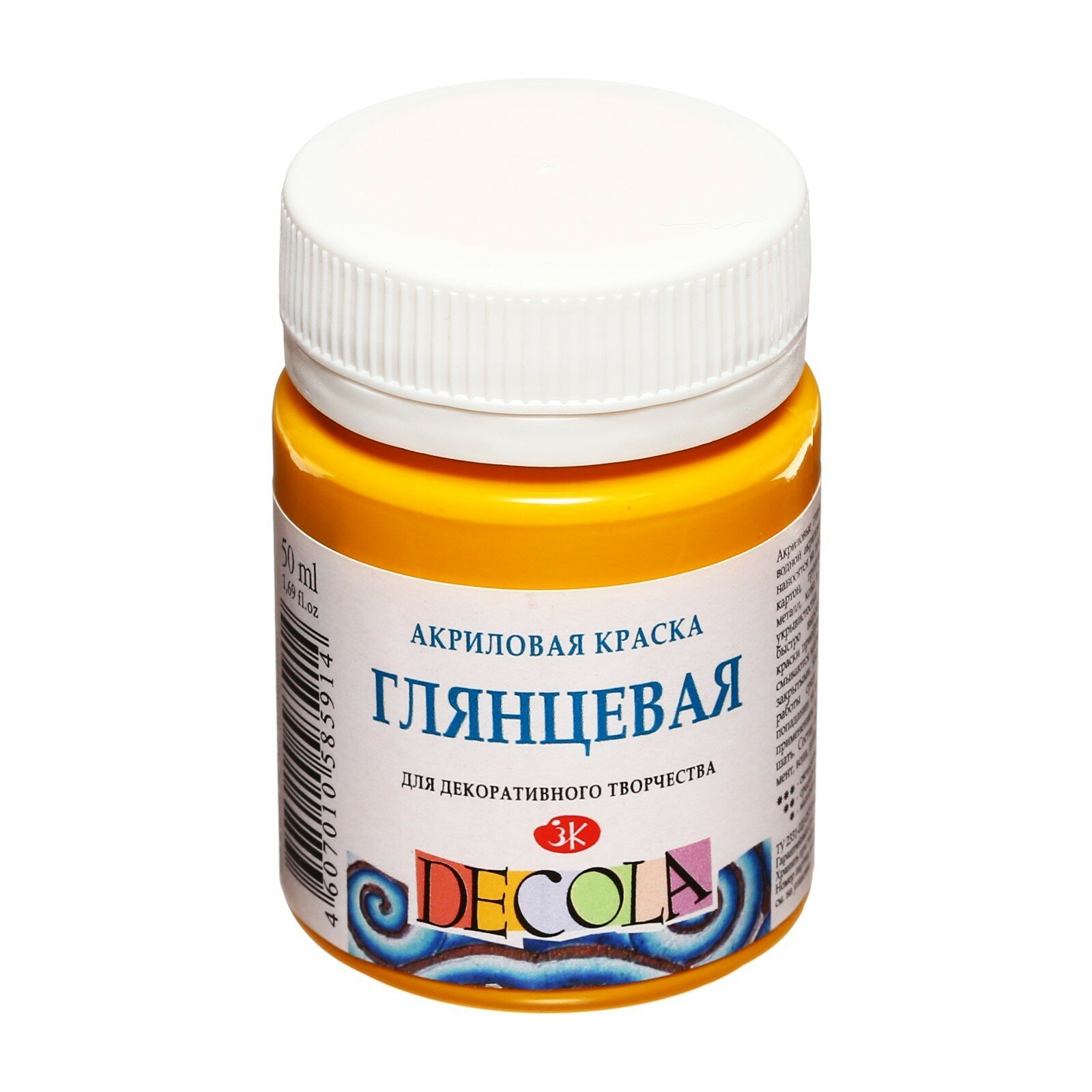 Краска акриловая художественная Decola, 50мл, глянцевая, баночка, желтый средний